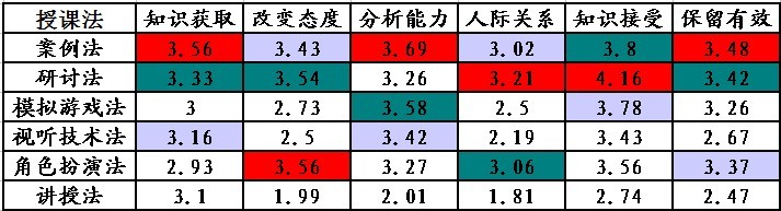 从“知识接受”的角度看,研讨法、案例法和模拟游戏法较有效。