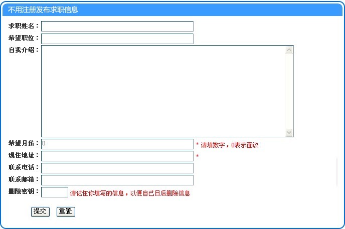发布一句话求职信息后,如你找到了工作,可以及时删除自己发布的求职信息,这时,你可以用你的删除密钥进行删除,如忘记了删除密钥,则可以请我们工作人员帮助你删除。