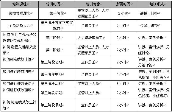 绩效管理项目培训计划表