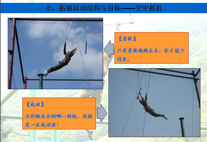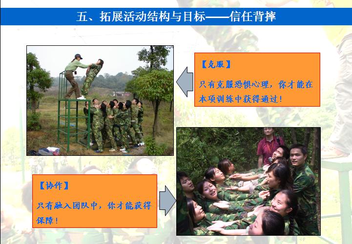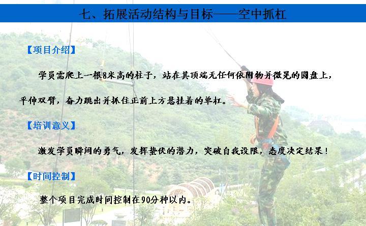 3、拓展训练是根据健康人的正常水平而设计的,如学员对自己的身体状况产生疑问,应在训练前咨询培训教练。
