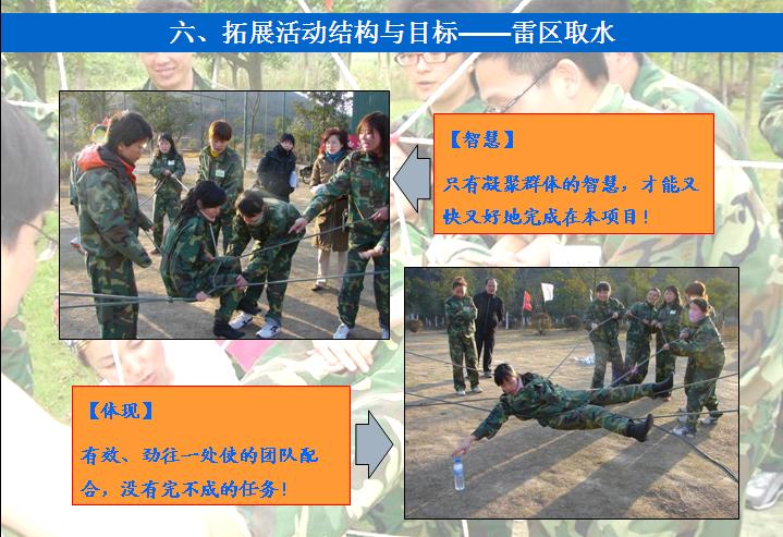 一、以积极的态度面对活动的考验,希望大家调动自身的各种感官,感受自我、感受团队、感受环境,用于将自己的感受传播给他人,寻求团队中的自我定位,发现集体的优势。