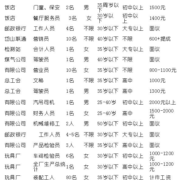 以下招聘信息摘自岱山人力资源市场,联系电话:0580-4473768