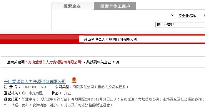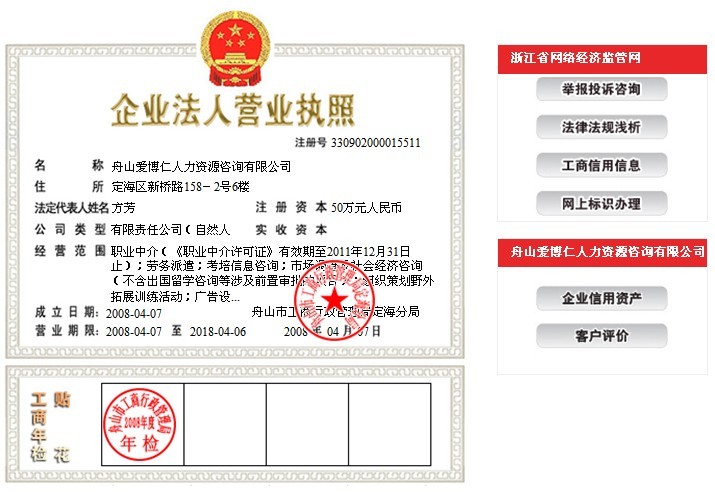 (3)浙江地区企业工商验证(目前只限于浙江省内注册的企业),是在“浙江省工商网”的“企业身份权威认证平台”上进行的验证,在这里您可以查询到企业是不是有工商营业执照等相关信息,以帮助求职者正确识别企业的资质等情况。