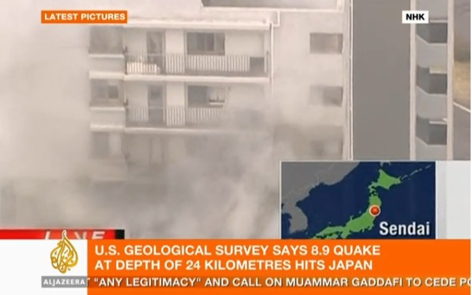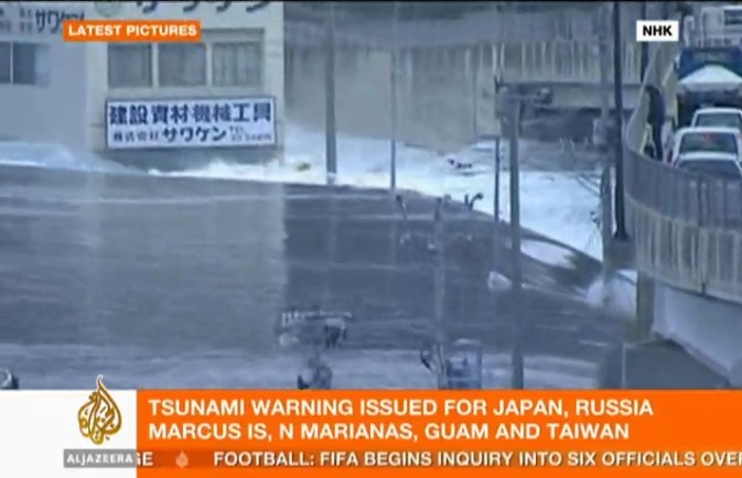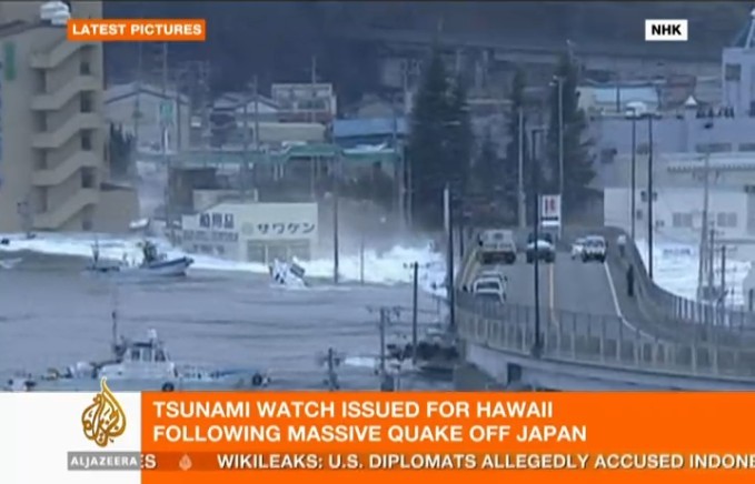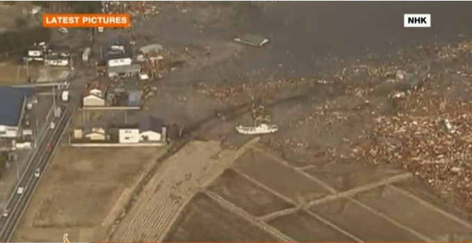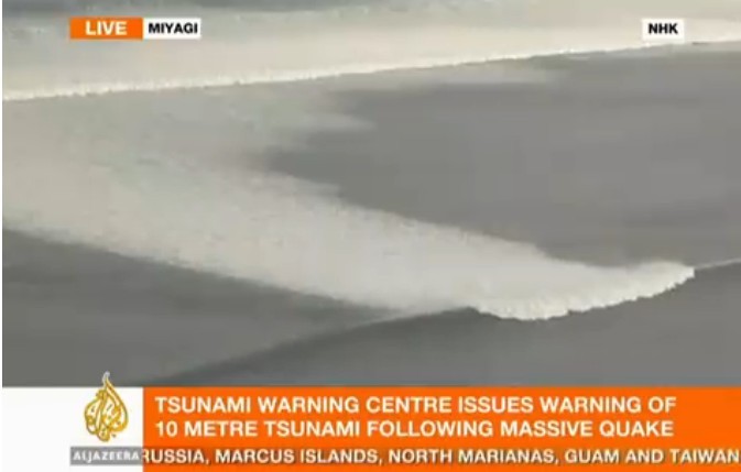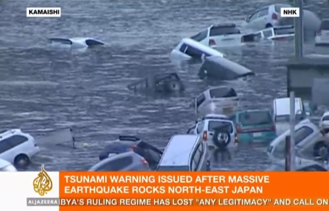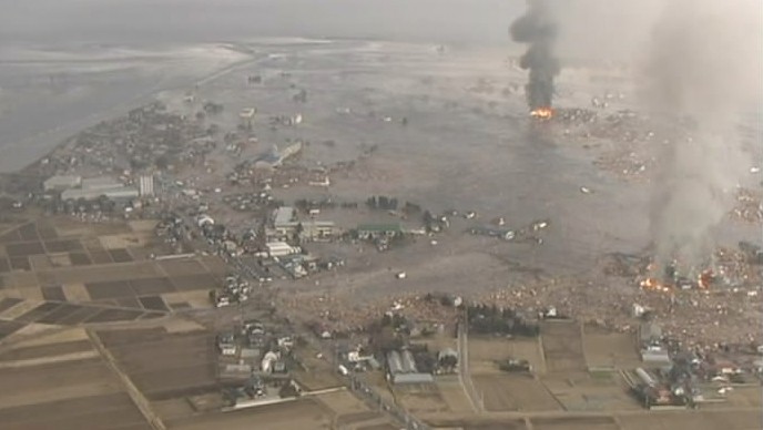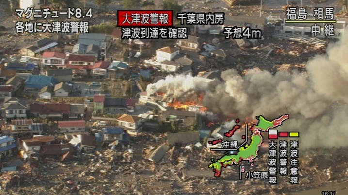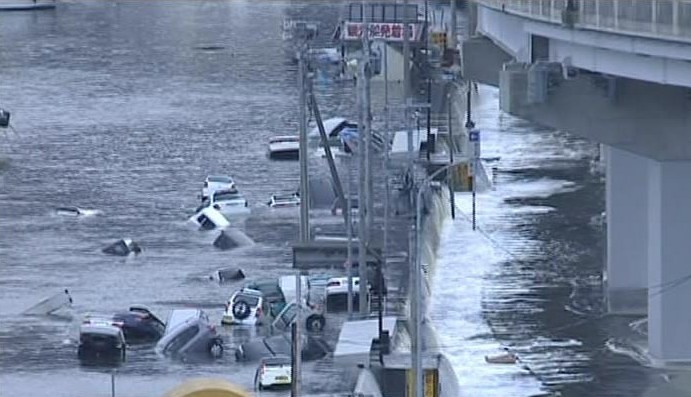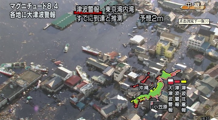 日本本州岛东海岸附近发生8.9级地震。仙台市港口观测到高达10米的海浪,福岛县小名滨港有大量汽车、房子、卡车被海啸卷走。海啸一直冲到宫城县南三陆町的南三陆警署的3楼。