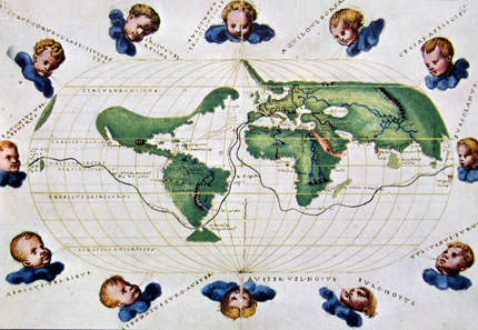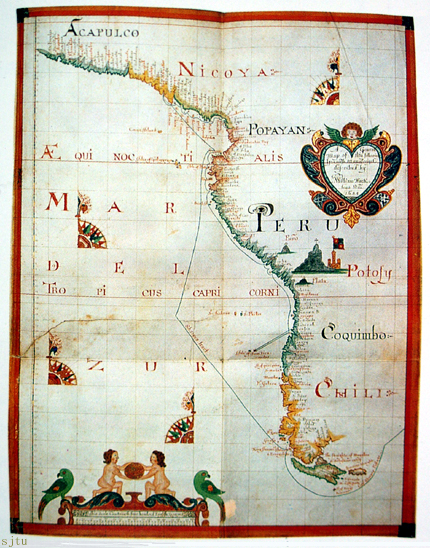 1545年制作的画有麦哲伦探险航线的地图