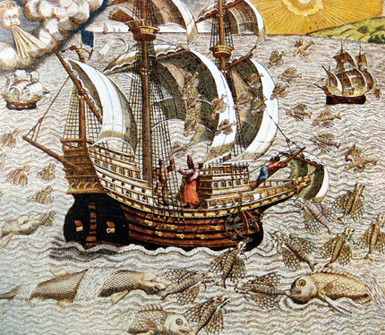 麦哲伦船队中的船只在航行中