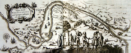 在这幅1650年的地图上,标有分隔南美洲大陆和火地岛的麦哲伦海峡。