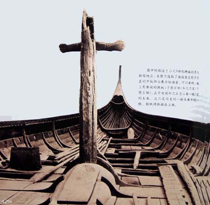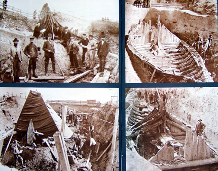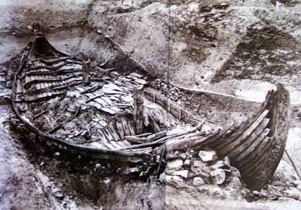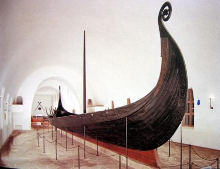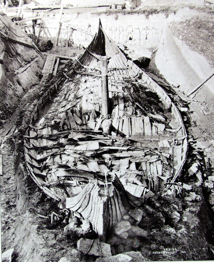 1903年,在奥斯陆某海峡处西岸的坟场出土了一艘大型的维京桨帆船,总长21.4米,龙骨长17.1米,宽5.1米,深1.3米,船内埋葬了一位殁于公元850年的维京王哈拉尔德·莱得贝尔德(Harald Redbeard)的女儿埃沙(Asa)皇后的尸体。按埋葬船的习惯,其船首朝南,按南北向放置。该船系绳于巨石,十分牢靠。该船反映了维京人熟练的造船技术和娴熟的工艺水平。船之基干部分用橡树制作,而桅杆则用枞树制作,其设计与哥克斯泰德(Gokstad)相似,12层列板固定在T型截面龙骨梁的两側,龙骨是用斧从单根橡树上砍下。龙骨不直,在船中下垂,增加吃水0.3米,究竟是人为的还是天然的,已无法推测,可是它却有了更为良好的操纵性,舷側顶板两側有12个孔,为了装置划桨架。船列板连接用搭接型式,用铆钉钉牢。中间再固定有17根自然曲线肋骨,接点处用羊毛织物捻缝。横梁与肋骨顶部相接,以提高船体之横强度。船上使用3.18米的操纵桨,其转动枢轴用柳条与船体相缚,该操纵桨轴在该枢轴中转动,利用一特殊木楔使操纵桨与尾柱的下部相连接。船之前部保留了一些设备和造船工具,包括9.8公斤重、长1.2米的无杆铁锚一只、系泊绳缆残长100米、用作船与泊地相连的6.9米长的舷梯一架,其它还有吸水井架、半圆凿、钻头、扁斧、刀和凿子等,可见其建造工艺已具相当水平。