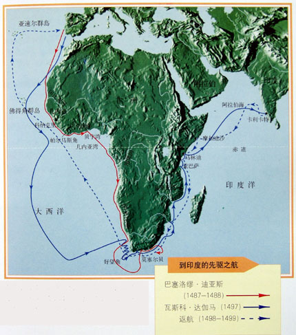1488年,巴托罗缪·迪亚斯饶过非洲南端的好望角(南纬35°),从而实现了欧洲航海家的梦想。证明大西洋和印度洋的水是相通的,并进而证明南北两半球的风是对称的。这样就使世界航海探险活动步入高峰期。
