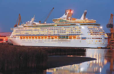 “嘉年华胜利号”是荷美邮轮公司所属。于2000年修造,它的排水量为10万吨,是著名的泰坦尼克豪华邮轮的两倍。